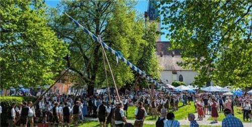 Unter strahlend blauem Himmel stellte die Landjugend St. Wolfgang mit Unterstützung der Maibaumdiebe des Burschenvereins Schwindkirchen ihren Maibaum in der Hofmark auf.Foto jof