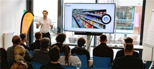 Wirtschaftsinformatik-Student David Pfeil bei einer Präsentation im Stellwerk18. Foto Anton Maier
