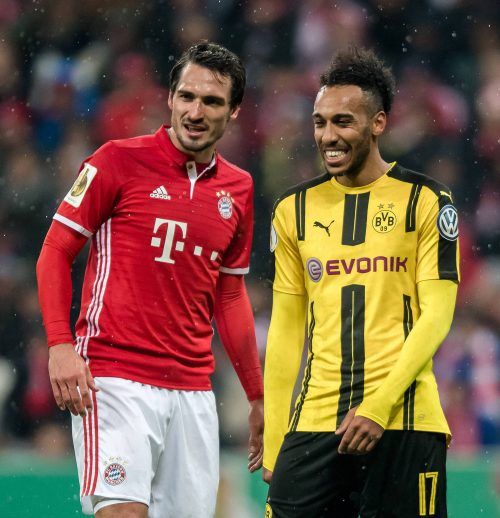 Für die bislang gehörig misslungene Saisonvorbereitung will sich der FC Bayern beim Supercup an diesem Samstag in Dortmund rehabilitieren. Im Duell des Deutschen Meisters mit dem Pokalsieger Borussia Dortmund geht es für Mats Hummels (im Bild mit Aubameyang) und seine Kollegen um den ersten Titel de