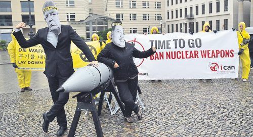 Es ist ein Zeichen gegen atomare Muskelspiele, wie die Welt sie aktuell zwischen US-Präsident Trump und Nordkoreas Diktator Kim Jong Un erlebt. Den Kampf gegen den atomaren Wahnsinn haben sich die Aktivisten der Internationalen Kampagne zur Abschaffung von Atomwaffen (Ican) auf die Fahnen geschriebe