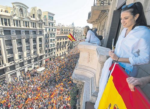Zuletzt waren auf Kataloniens Straßen vor allem Befürworter einer Abspaltung der Region von Spanien zu sehen. Am Wochenende zeigte sich nun erstmals eindrucksvoll die Gegenbewegung: Hunderttausende demonstrierten friedlich in Barcelona für den Verbleib Kataloniens in Spanien und in der Europäischen