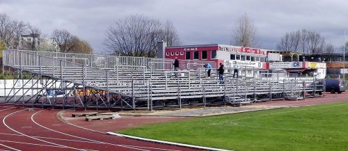 Da ist das Ding! Seit Samstag steht die OVB-Tribüne im Rosenheimer Jahnstadion für den Regionalliga-Knaller 1860 Rosenheim gegen 1860 München. Gespielt wird am Sonntag, 26. November, 14 Uhr. Das Spiel ist ausverkauft. Mit dabei sind rund 800 Leser – dank ihrer OVB-Abocard. Vor dem Match am kommenden