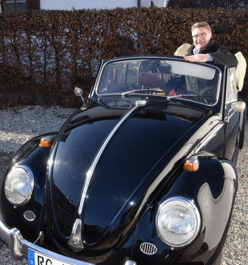 Käfergeschichten: In vielen Familien gehörte das Kultauto zur Familie. So auch heute noch bei Heiner Koula (58) aus Rosenheim. Sein „Bubu“, wie er ihn nennt, hat 160 000 Kilometer hinter sich. Ein Blickfang ist auch die Vase, die für Blumendekoration im Cockpit eingebaut ist. Genau heute vor 40 Jahr