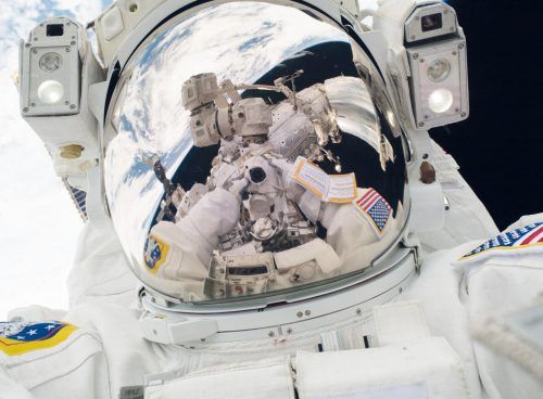Behörden mahnen: Bitte nicht jedes Selfie nachmachen! Dieses hier kann man gar nicht nachmachen. Bei einem Spaziergang im Weltraum hat US-Astronaut Mark Vande Hei außerhalb der Internationalen Raumstation (ISS) ein Foto von sich und seinem Helm gemacht. Das Bild entstand bei einem rund siebeneinhalb