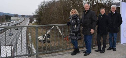 Historischer Moment an der Autobahn A 8: Nach jahrzehntelangem Kampf erfolgte gestern der Startschuss zum Bau einer zwei Kilometer langen und sechs bis neun Meter hohen Lärmschutzwand bei Dettendorf (Gemeinde Bad Feilnbach). CSU-Bundestagsabgeordnete Daniela Ludwig, Landrat Wolfgang Berthaler, Gilbe