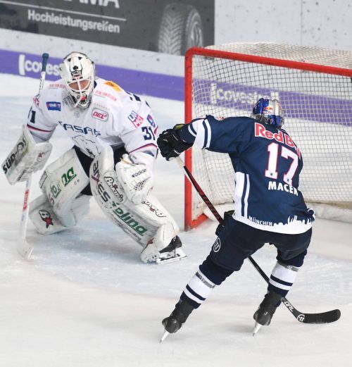 Fehlstart für die Münchner in die Final-Playoffs zur Deutschen Meisterschaft: Im ersten von maximal sieben Spielen unterlag Titelverteidiger EHC Red Bull München gegen die Eisbären Berlin mit 3:4. Jon Matsumoto, Brooks Macek (Foto, r.) und Keith Aucoin trafen für den EHC.