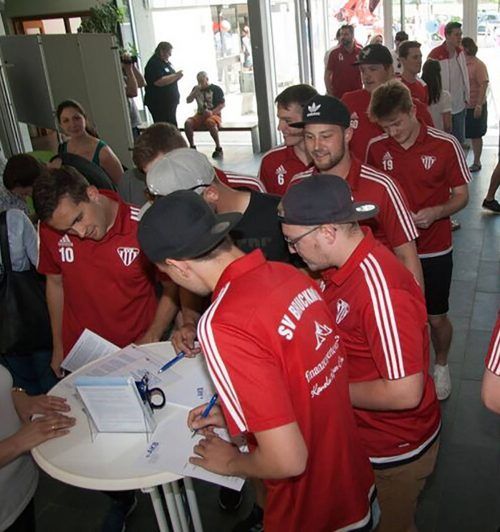 Eine Solidarität, die ihresgleichen sucht, bewiesen einmal mehr die Bruckmühler Bürger. Als Gruppen, wie die Fußballer (Foto), sowie Einzelpersonen standen sie für den achtjährigen Benedikt zusammen und pilgerten regelrecht zur Typisierungsaktion gegen Blutkrebs. Alle hoffen, dass so ein geeigneter