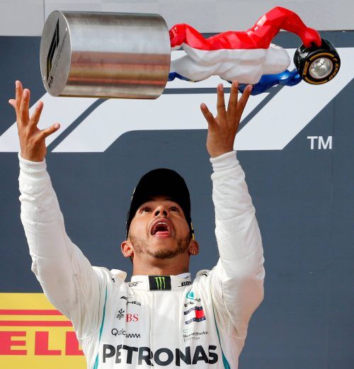 Formel-1-Weltmeister Lewis Hamilton (Foto) hat mit dem Sieg beim Großen Preis von Frankreich die Führung im WM-Gesamtklassement zurückerobert. Der Mercedes-Pilot profitierte dabei von einem Unfall des deutschen Rivalen Sebastian Vettel im Ferrari, der zu Beginn des Rennen
