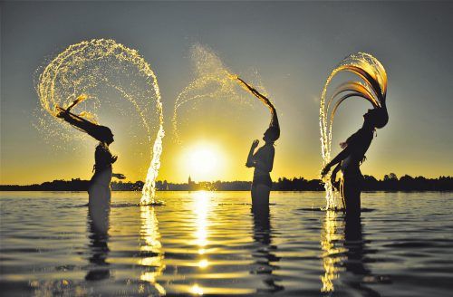 Badenixen am ChiemseeTraumhaftes Badewetter sagen Meteorologen für dieses Wochenende voraus. Der ideale Zeitpunkt, um den Kopf nicht in den Sand, sondern ins Wasser zu stecken. Ganz nach dem Vorbild dieser drei Badenixen, die im Chiemsee nach Erfrischung gesucht haben. Eine bewährte Methode, um auch