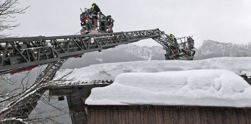 Beim Einsturz eines Dachs einer Aschauer Gaststätte ist gestern ein Feuerwehrmann verletzt worden. Ein Rettungshubschrauber transportierte den Verletzten, der durch einen Schneebrocken von einer Leiter gestoßen worden war, in die Klinik. Nach Angaben von Richard Schrank, Kreisbrandmeister des Landkr