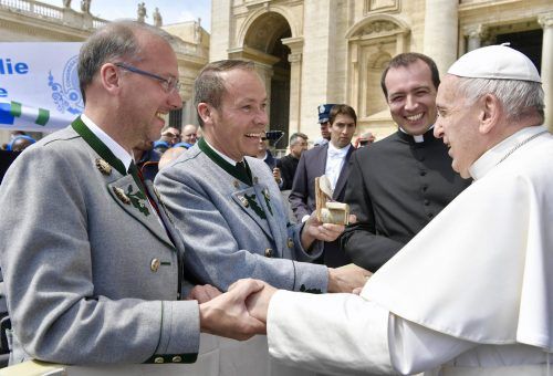 …hatte jetzt Herbert Reiter (Zweiter von links) im Gepäck, als für den Aschauer Tourismuschef in Rom ein Traum in Erfüllung gegangen ist. Johannes Palus (Zweiter von rechts), ehemals Pfarrer in der Chiemgau-Gemeinde und mittlerweile im Vatikan eingesetzt, hatte die Audien