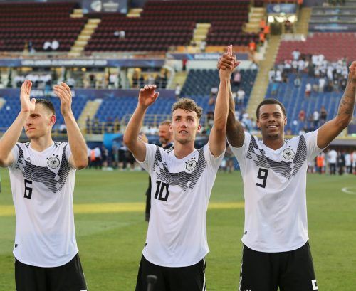 Deutschlands U21-Fußballer stehen zum zweiten Mal nacheinander im EM-Endspiel. Die Mannschaft von Trainer Stefan Kuntz gewann am Donnerstag in Bologna im Halbfinale 4:2 (1:2) gegen Rumänien und kann am Sonntag als erste deutsche U21 den Titel verteidigen. Der Hoffenheimer Nadiem Amiri und Luca Walds