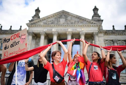 Mehrere hundert Mitglieder der Fridays-for-Future-Bewegung haben mit einer Menschenkette den Reichstag in Berlin eingekreist. Mit Blick auf die letzte Sitzung des Bundestags vor der parlamentarischen Sommerpause erklärten die Aktivisten am Freitag auf Twitter: „Wer keine Klimapolitik macht, hat auch