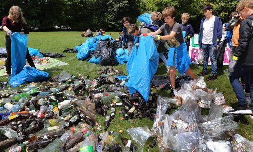 Müllkippe Englischer Garten Fünf Stunden lang sammelten die Schüler des Luitpold-Gymnasiums gestern Müll im Englischen Garten ein. Am Ende hatten sie eine beunruhigende Menge an Unrat zusammengetragen – vor allem Flaschen und Zigarettenkippen. FOTO: MICHAEL WESTERMANN