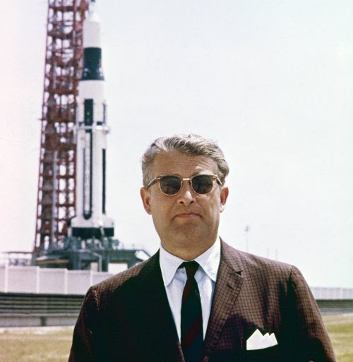 Er gilt als Vater der Mondlandung: der deutsch-amerikanische Raketeningenieur Wernher von Braun – hier auf dem Areal des Kennedy-Raumfahrtzentrums in Florida vor einer Saturn-1-Rakete (Foto: dpa). Seinem Antrieb – im wahrsten Sinne des Wortes – ist es zu verdanken, dass vor 50 Jahren, am 21. Juli 19