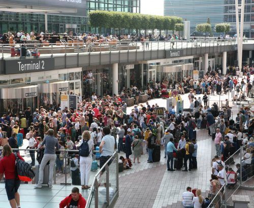 Mindestens 190 Starts und Landungen sind nach einer Panne am Flughafen München gestern annulliert worden. Verursacht hat das Chaos (Foto: Albrecht) ein 21-jähriger spanischer Student, der nach seiner Ankunft aus Bangkok im Terminal 2 einen Notausgang öffnete und verschwand. Die Polizei benötigte Stu