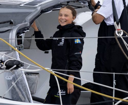 Nach zwei entbehrungsreichen Wochen auf offener See hat Klimaaktivistin Greta Thunberg mit einer Rennjacht New York erreicht. Am 14. August war sie im britischen Plymouth aufgebrochen. Bei durchwachsenem Wetter und gelegentlichem Nieselregen wurde die 16-jährige Schwedin am Mittwoch von 17 Segelboot