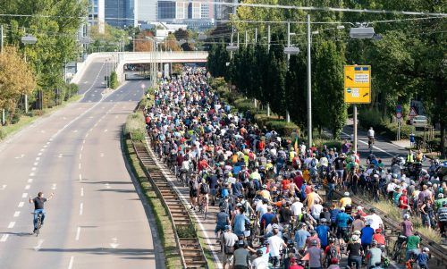 Protest gegen die AutomesseAuf der gesperrten Autobahn A 648 sammelt sich der Protest gegen die Automesse IAA: Tausende Klimaschützer forderten klimafreundlicheren Straßenverkehr. Später besetzten Aktivisten den Haupteingang der Messe in Frankfurt.