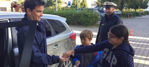 Süßes oder Saures gab es vor der Justus-von- Liebig-Schule in Heufeld (Gemeinde Bruckmühl) für die Fahrer der Eltern-Taxis. Ziel der Kooperationsaktion „Polizei und Schule“ war es, die Eltern für die Schulwegsicherheit ihrer Kinder zu sensibilisieren. Schüler der dritten und vierten Klassen kontroll