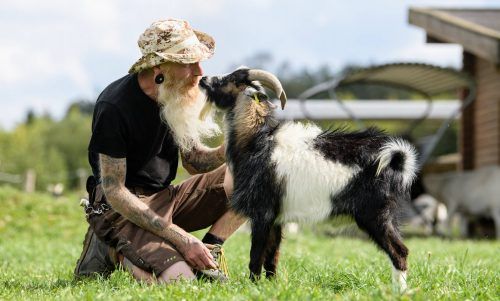 Vorsichtiges Beschnuppernzwischen Ziegenbock „Hui Buh“ und Tierpfleger Gerd Walther auf dem Gnadenhof Gut Streiflach in Germering. Über „Hui Buh“ wird heute vor dem Verwaltungsgericht verhandelt. Denn seine bisherigen Besitzer aus Unterhaching mussten den Bock abgeben, weil sie ihn aus Sicht des Lan