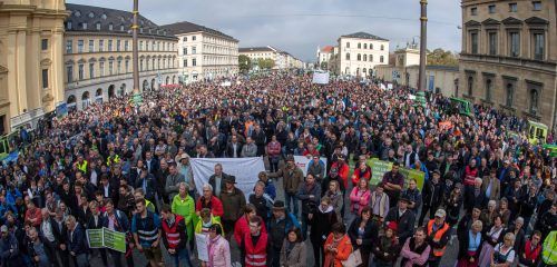 Tausende bei Bauern-DemoIn ganz Deutschland sind gestern Landwirte gegen die aktuelle Agrarpolitik auf die Straße gegangen. Am Münchner Odeonsplatz nahmen mehr als 2000 Bauern an der Protestkundgebung teil. Etwa die Hälfte von ihnen waren symbolisch mit dem Bulldog angereist, was zu einigen Verzöger