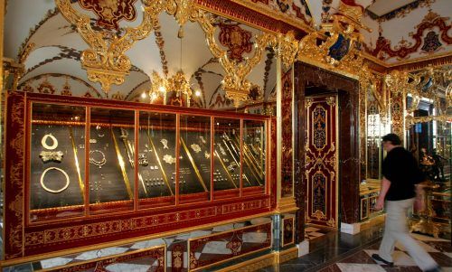 Millionenraub Aus dem Grünen Gewölbe in Dresden sind am frühen Montagmorgen drei wertvolle Juwelengarnituren aus dem 18. Jahrhundert gestohlen worden. Sie umfassen rund 95 Einzelstücke mit Brillanten und Diamanten. Die Diebe haben gezielt diese Vitrine (Foto) zerstört und ausgeräumt. FOTO: ddp
