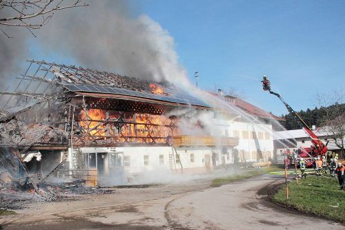 Rund 2,8 Millionen Euro – so hoch schätzt die Polizei derzeit den Schaden ein, den der Brand eines landwirtschaftlichen Anwesens (Foto: Reisner) am Dienstag im Frasdorf Ortsteil Dösdorf verursacht hatte (wir berichteten). Hinweise auf Brandstiftung gäbe es nicht. Laut Polizei verdichten sich die Hin