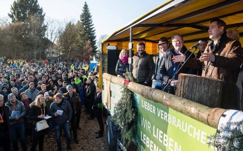 Söder stellt sichMinisterpräsident Markus Söder hat aufgebrachten Landwirten eine Überprüfung der geplanten Düngemittelverordnung zugesichert. Bei einer Demonstration am Rande der Klausur der CSU-Landesgruppe in Seeon sagte Söder, er wolle das umstrittene Thema Messstellen neu aufrollen. fOTO: dpa