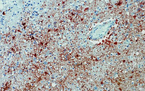 Diese Aufnahme zeigt einen Antikörpernachweis (Foto: Bernhard-Nocht-Institut für Tropenmedizin/dpa) zum sogenannten Borna-Virus. Lange war die Borna-Krankheit nur bei Nutztieren bekannt. Nun bestätigen Nachweise: Auch beim Menschen sorgt das Virus für Todesfälle. Wie jüngst bei einem elfjährigen Mäd