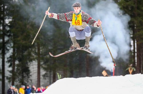 Die Ski-Nostalgie Kommt es aufs Können an – oder auf die Ausrüstung? Beim „Nostalski“ am Barmseegletscher haben sich wieder rund 100 Männer und Frauen auf alten Holzlatten und in alter Kleidung auf die Piste gestürzt. Veranstalter: der Krüner Junggesellenverein. Unser Bild zeigt Frederik Kirchner. F