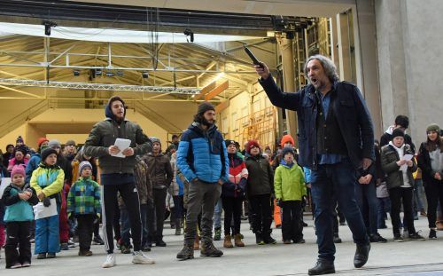 Das Volk probt die PassionWenige Monate vor dem Beginn der Passionsspiele in Oberammergau hat Spielleiter Christian Stückl (rechts) zum ersten Mal das Volk auf die Bühne gebeten. Mehr als 500 Oberammergauer studierten am Samstag unter anderem die Szene „Einzug in Jerusalem“ ein. FOTO: URSULA DÜREN/D