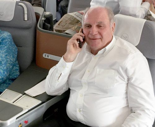 Die FC Bayern-Saison geht in die heiße Phase: Heute gastiert der Rekordmeister im Achtelfinal-Hinspiel der Champions League beim FC Chelsea (21 Uhr/Sky). Moralische Unterstützung leistet Uli Hoeneß, der gestern für das Duell nach London flog (siehe Foto). Der 68-Jährige erinnerte dabei noch einmal a