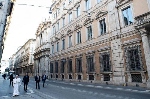Einsam in Rom Normalerweise geht er nicht raus aus dem Vatikan zum Spaziergang: Doch in der Coronakrise, wenn alle anderen zuhause bleiben müssen, kann Papst Franziskus nahezu alleine durch die menschenleeren Straßen von Rom gehen. Normalerweise tobt hier der legendäre Stadtverkehr. . . Foto: VATICA