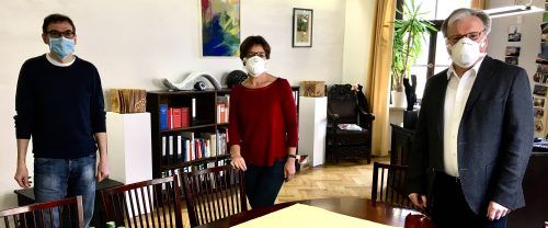 Wie viele Kommunen in der Region befindet sich auch das Wasserburger Rathaus im Krisenmodus. Bürgermeister Michael Kölbl (rechts) hat angeordnet, dass die Mitarbeiter bei Besprechungen – auf unserem Foto mit Kämmerer Konrad Doser und Sekretärin Heidi Herker – nicht nur Distanz zueinander halten, son
