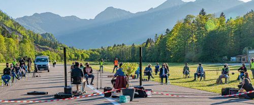 Sie wollten ein Zeichen setzen: Ein Konzert in Corona-Zeiten und zugleich konform mit den geltenden Beschränkungen. Die Band Django 3000 – selbst dezimiert, da Musiker aus München und Stuttgart zu Hause geblieben waren, spielte im Freien auf der Landebahn des Unterwössener Flugplatzes vor 35 Zuhörer