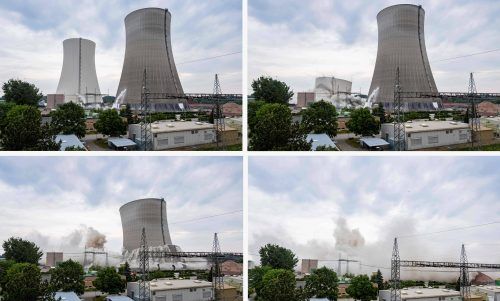 Einstürzende Altbauten Am Ende ihres Daseins werden diese zwei tristen Riesen doch noch zum Hingucker. Die Kühltürme des stillgelegten Akw in Philippsburg/Baden-Württemberg wurden gestern gesprengt. Den Zeitpunkt hatte der Energiekonzern EnBW geheim gehalten, um keine Zuschauer anzulocken. afp