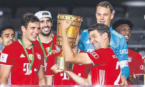 Das Double ist perfekt: Nach der 30. Meisterschaft haben sich Thomas Müller (Mitte) und Co. am Samstag zum 20. Mal den DFB-Pokal geschnappt. Der Jubiläums-Titel soll aber noch nicht der letzte Erfolg der Saison gewesen sein: Der Rekordmeister träumt vom Triple.