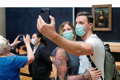 Masken-Selfie mit Mona Lisa Der Louvre in Paris hat wieder seine Pforten geöffnet – allerdings mit starken Einschränkungen. Zum Neustart dürfen lediglich 400 Menschen pro halbe Stunde das Museum betreten. Durch die Schließung gingen bereits 40 Millionen Euro Einnahmen verloren. Reuters