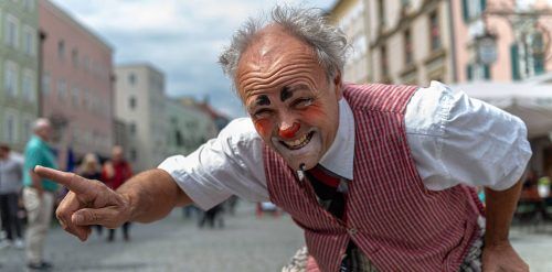 Endlich wieder Leben in der Stadt: „Sommer in Rosenheim“, Kunst und Kultur auf großen und kleinen Plätzen feierte am Samstag Premiere. Zu den Lieblingen des Publikums zählten Künstler wie Clown Stefan Pillokat, die unvermittelt auftauchten und spielten. „Sommer in Rosenheim“ dauert bis zum 6. Septem