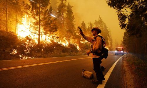 Kampf gegen Brände Starke Winde, Trockenheit und Hitze verschärfen die Lage in den kalifornischen Waldbrandgebieten. Bislang kämpfen die Feuerwehren auf verlorenem Posten: In Kalifornien seien schon mehr als 8100 Quadratkilometer Land abgebrannt, teilte die Brandschutzbehörde mit. Sanchez/dpa