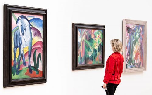 Was Sie stets vom „Blauen Reiter“wissen wollten, aber nie erfahren haben – das ist im Münchner Lenbachhaus sehr bunt zu erleben. Der Almanach „Der Blaue Reiter“ wird zwischen Kunstrevolution, etwa durch Franz Marc (Foto), Volkskunst und Skulpturen lebendig. Foto: dpa