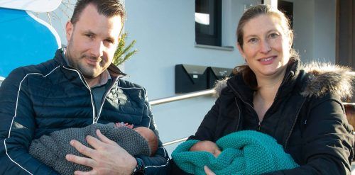 Was für eine Osterfreude für Bernaus Bürgermeisterin Irene Biebl-Daibler und ihren Mann Christian: Die 34-Jährige hat am Karsamstag im Klinikum Rosenheim zweieiige Zwillinge zur Welt gebracht. Ludwig (links) und Paul heißen die beiden Buben, die das Ehepaar in den kommenden Monaten mit Sicherheit kr