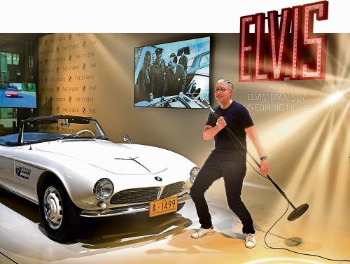 Elvis-Cabrio im AutoparadiesMünchen hat eine neue Attraktion – in München-Freimann hat in einer alten Lokhalle die spektakuläre „Motorworld“ die Pforten geöffnet. Autofans finden hier alles, was das Herz begehrt. Sogar das alte Auto von Elvis Presley – ein weißer BMW 507. Vor dem Cabrio darf man bal