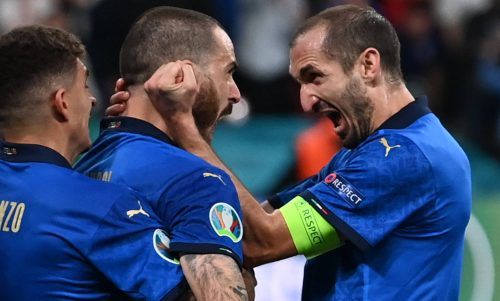 Italien erobert WembleyIn einem hochspannenden EM-Finale hat Italiens Fußball-Nationalmannschaft im Elfmeterschießen England mit 3:2 bezwungen. Den entscheidenden Strafstoß im Wembley-Stadion verschoss Saka, Italiens Torhüter Dommarumma hielt. Foto: dpa