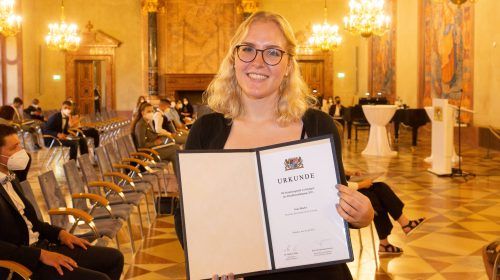 Was für ein Schuljahr – und was für ein Abschluss! Im Kaisersaal der Residenz hat Ministerpräsident Markus Söder 50 Schüler ausgezeichnet, die einen herausragenden Abschluss haben und sich sozial engagieren. Unter den Geehrten: Jana Hackl aus Moosburg. Foto: Bodmer