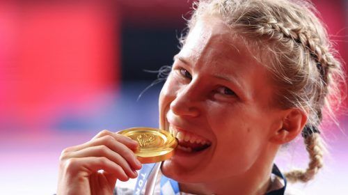 So stellt man sich den Schlusspunkt einer sportlichen Laufbahn vor: Ex-Weltmeisterin Aline Rotter-Focken (Foto: dpa) setzte sich im Finale der Gewichtsklasse bis 76 kg gegen die fünfmalige Weltmeisterin Adeline Gray aus den USA durch und gewann Gold. Die 30 Jahre alte gebürtige Krefelderin hat damit