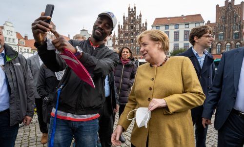 Plötzlich war die Kanzlerin da Da herrschte gestern plötzlich Aufregung auf dem Wochenmarkt von Greifswald: Die scheidende Kanzlerin Angela Merkel hatte sich spontan zu einem Besuch der Fußgängerzone in ihrem alten Wahlkreis entschieden. „Ich wollte noch mal Arrivederci sagen“, erklärte sie einer Bl