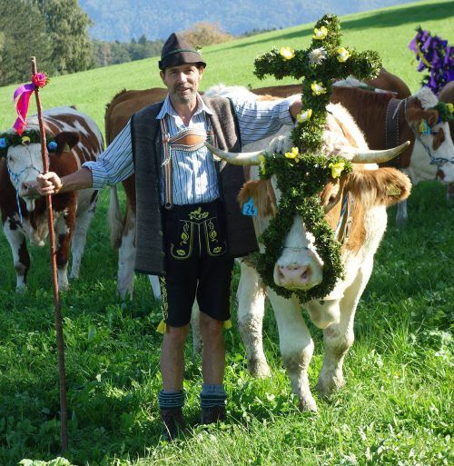 Mit Glockengeläut sowie geschmückt mit Almbandeln, Kronen, Kränzen und Kreuzen kehrte jetzt das Almvieh von seinem Sommerquartier auf der Lindlalm in die heimatlichen Ställe in Rottau zurück. Die Tiere waren nach altem Brauch so geschmückt, weil es den ganzen Sommer über auf der Alm keinen Unglücksf