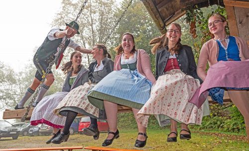 Mit Schwung in den HerbstDie Ebersberger Trachtler zeigen, wie das geht mit der guten Laune. Die Damen haben ihre schönsten Dirndl angezogen und ein junger Mann gibt der Kirtahutschn Schwung. So macht das Leben und der Herbst Spaß. Noch eine gute Nachricht: Diese Woche wird’s zum Teil sonnig. Foto:
