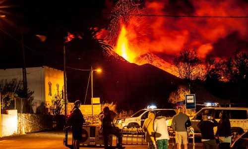Kein Ende in Sicht Vulkanologen erwarten angesichts der anhaltenden Heftigkeit der Vulkantätigkeit auf der Kanareninsel La Palma kein baldiges Ende des Ausbruchs. Der Vulkan in der Cumbre Vieja bot auch gestern – mehr als fünf Wochen nach dem Beginn des Ausbruchs – spektakuläre Bilder. Foto: Emilio